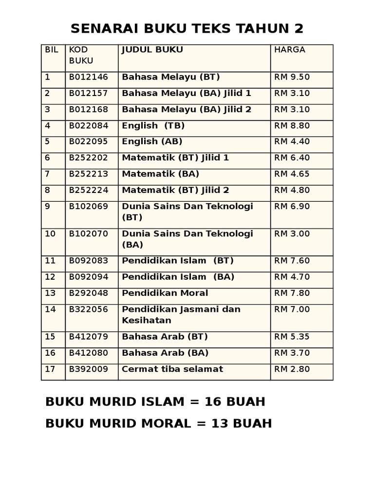 8 iqra jika belum ada senarai buku tahun 1. Senarai buku teks dan aktiviti sesi 2019 tahun 4sri sirah kafa rm 5 60 14 aqidah. SPBT SKPHT 2020 SENARAI BUKU TAHUN 6 Kegunaan 2020 BIL KOD BUKU JUDUL BUKU HARGA 1 B016061 Bahasa Melayu Tahun 6 SK RM 1130 2 B026043 English Year 6 SK RM 936 3 B256045 Matematik Tahun 6 SK RM 1145 4 B106062 Sains Tahun 6 SK RM 1222 5 B196001 Pendidikan Kesihatan.